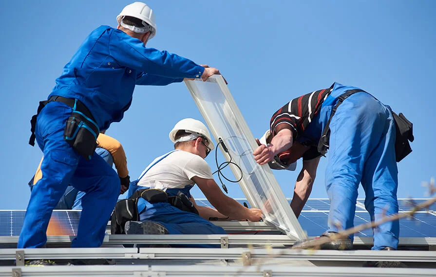 Medium shot men working on roof presentation
